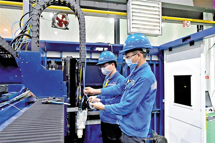 聽(tīng)!大族激光智能裝備集團(tuán)全國(guó)各地生產(chǎn)車(chē)間的機(jī)器轟隆聲回蕩著,生產(chǎn)車(chē)間馬力全開(kāi)、各種零件錯(cuò)落有致,工程師們或凝神工作或步履匆匆,處處是一片熱火朝天的景象。