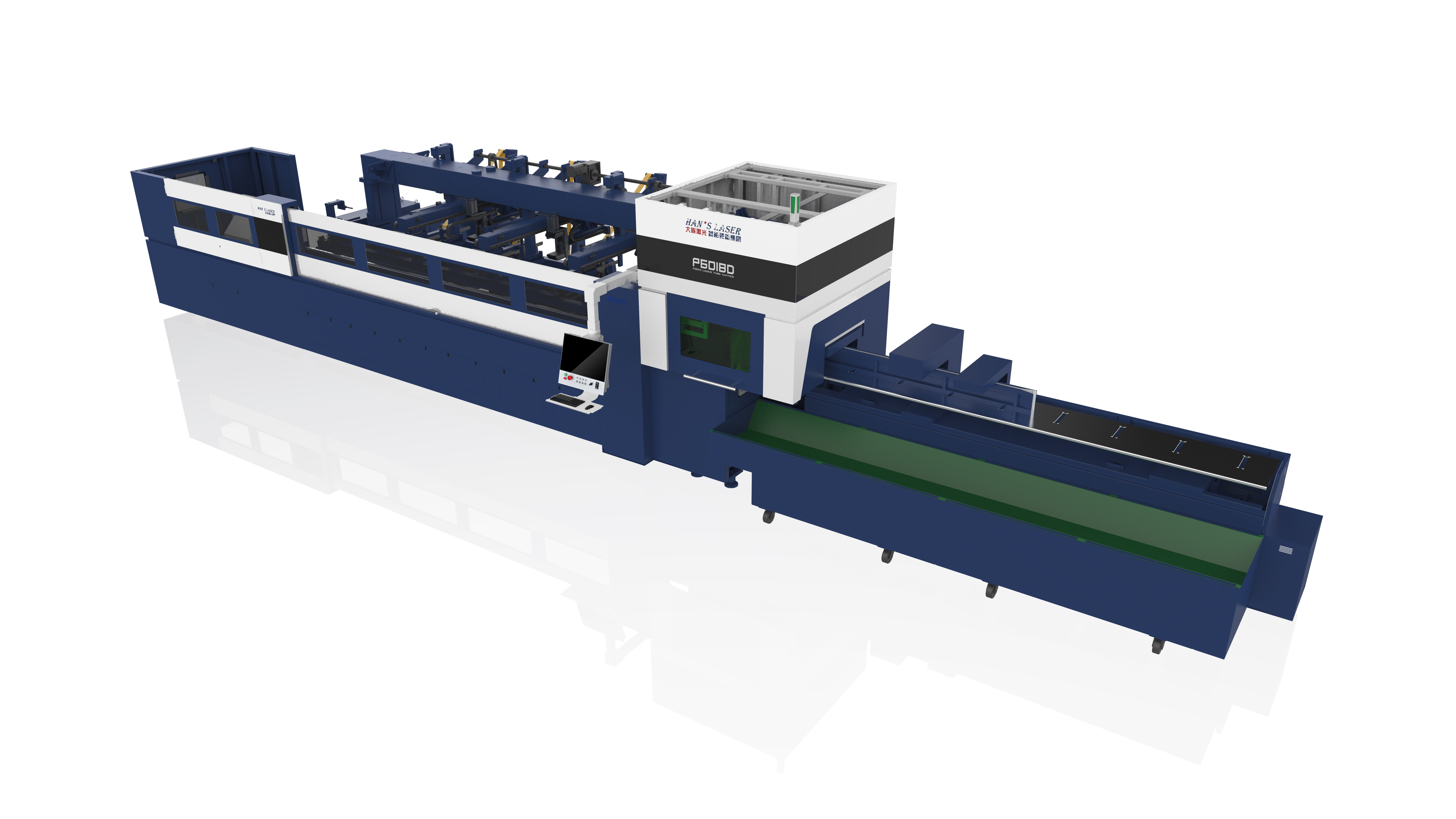 然后將管料送到切割區,進行端頭修邊,最后根據自動編程軟件做好的套料程序進行切割,切斷的每個工件自動滑落到操作者旁邊的成品框,人工將工件收集到指定成品料框,在進行管材切割的同時,下一根管材在上料結構同步進行自動備料,上一根管材加工完成后,將立即送入下一根管材,設備瞬時完成上料動作,管材快速進入切割狀態,同步備料、持續生產、提效增值。
