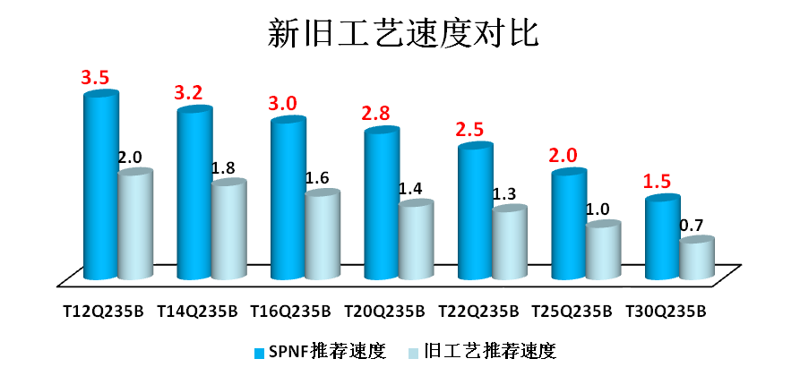 SPNF切割工藝的原理:使用能量密度與材料吸收率更高的負焦點光束垂直照射于板材,輔以光束同軸的超強氧氣氣流,能夠快速有效的將熔融金屬排出,從而實現快速切割。該工藝的優點為:⑴切割速度快,經濟效益高;⑵板材吸收率高,局部熱量積累小,更利于保護齒條和床身;⑶耗氣量小(0.8-1bar),成本低,氧氣更潔凈,不易污染管道,易損易耗件的使用壽命更長;⑷使用噴嘴的口徑大,不易發熱,切割更穩定;⑸切割隨動高度高,割嘴、陶瓷環不易損壞。