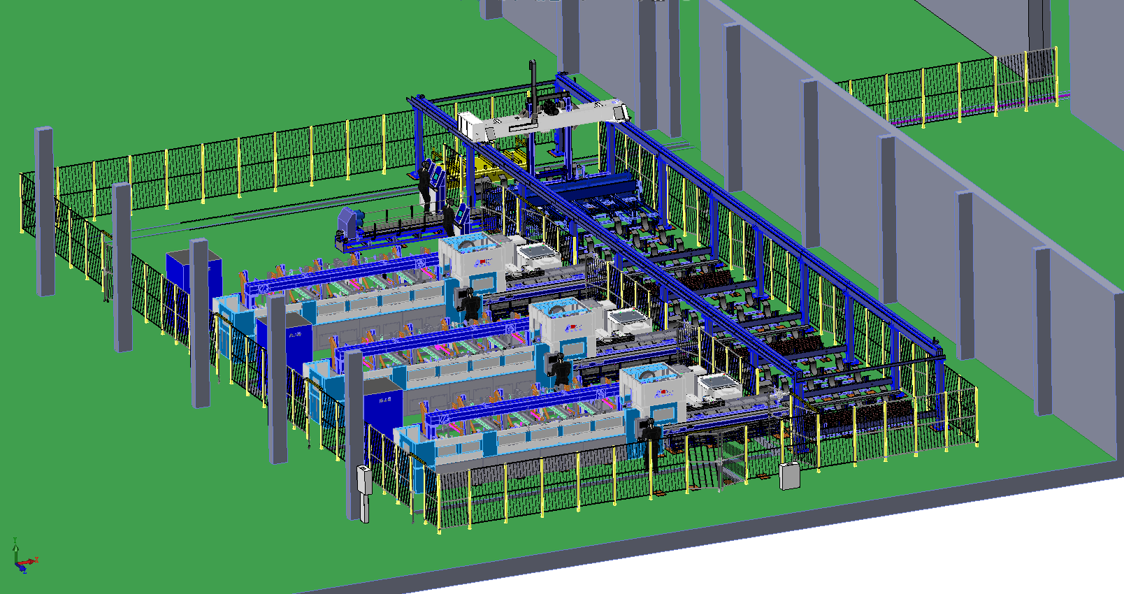 激光切管柔性生產線(切管FMS)將庫房至激光加工車間之間建立一條自動傳輸線,實現成捆原材料及成品往返傳輸。